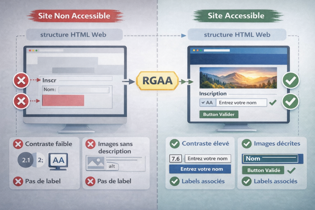 Le RGAA (Référentiel Général d’Amélioration de l’Accessibilité) est le cadre utilisé en France pour évaluer l’accessibilité des sites web.