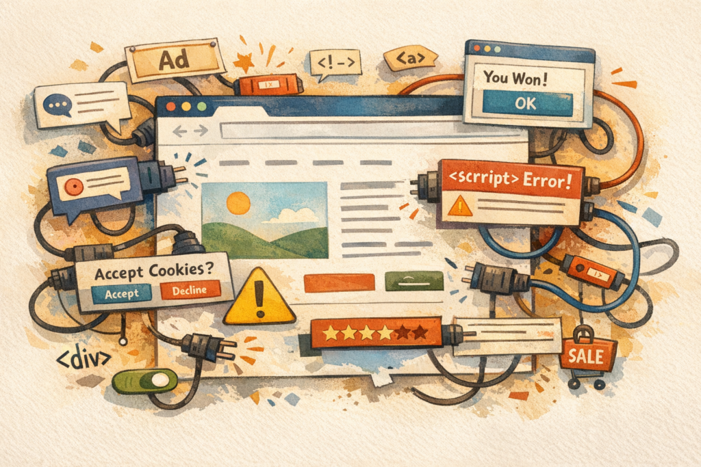 Chaque plugin ajoute une fonction visible, mais aussi du HTML, des attributs, des scripts, des styles et des comportements qu’on maîtrise plus ou moins.