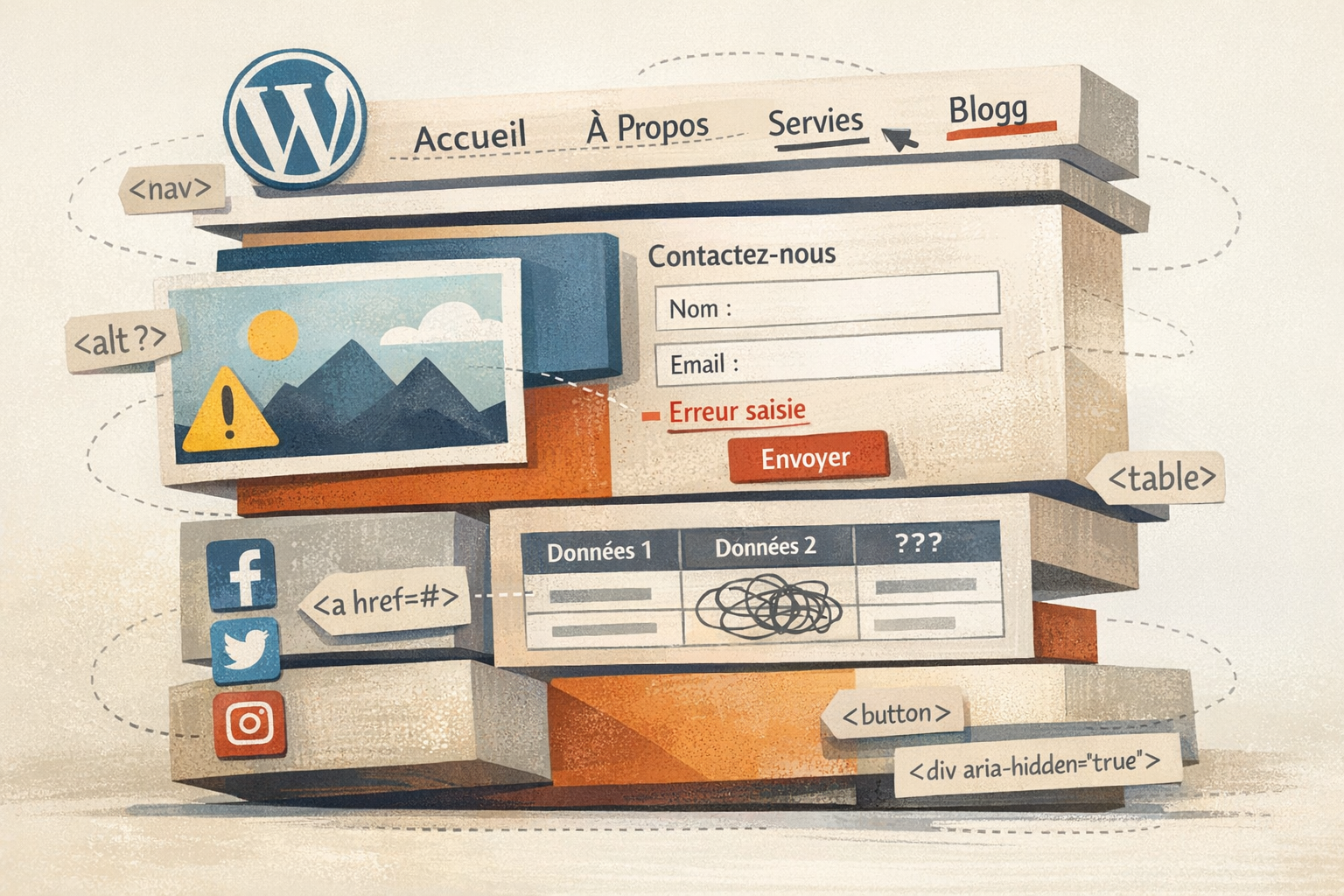 Sur WordPress, les problèmes d’accessibilité viennent surtout de l’endroit où plusieurs couches techniques se croisent : thème, blocs Gutenberg, plugins, HTML généré, scripts tiers, héritages plus anciens.
